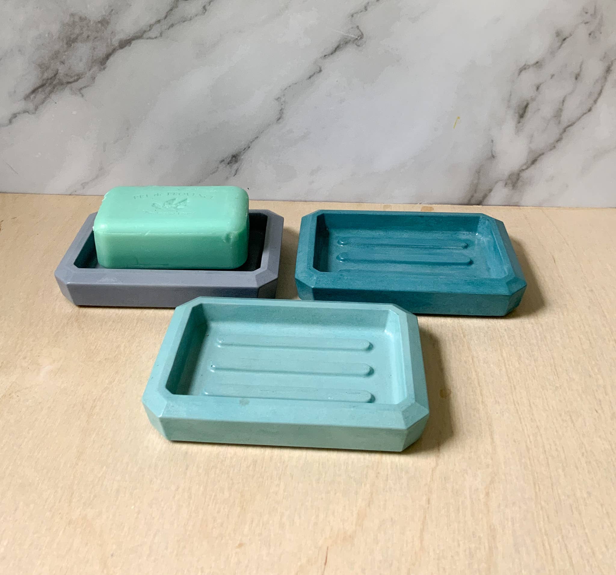 These are handmade with concrete, an eco-friendly sealer, and rubber pads.