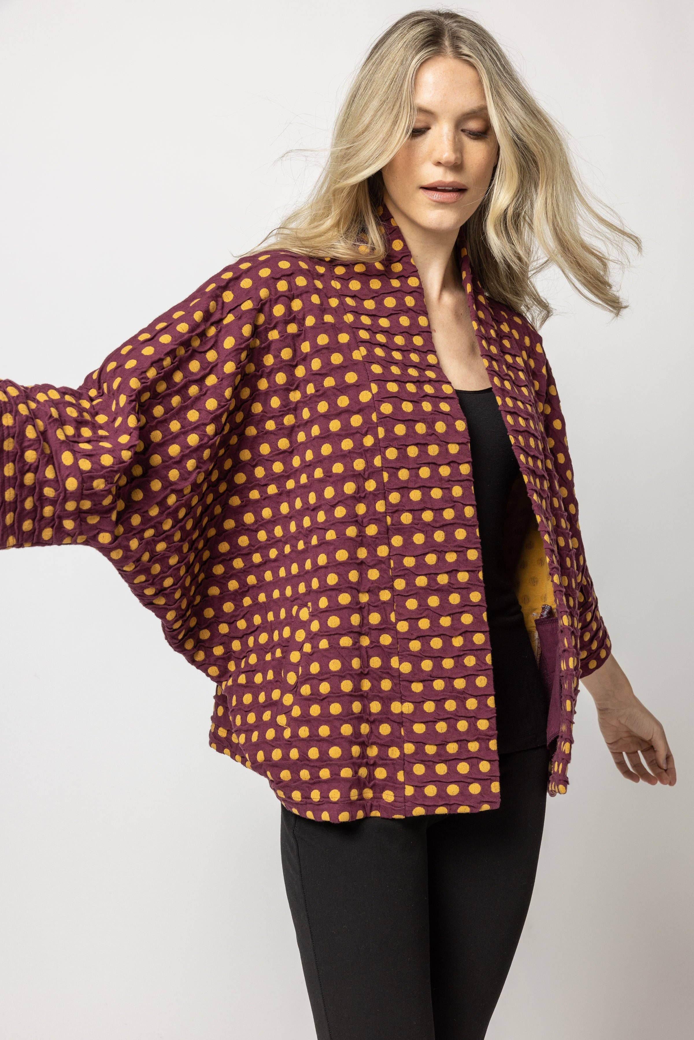 The Como Spot Weave Kimono Cardigan Jacket offers a roomy but flattering fit that suits all sizes. Featuring breezy batwing sleeves, an open front, and handy front pockets, it’s your go-to for effortless style and comfort.