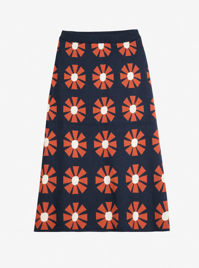 Flower jacquard midi knitted skirt