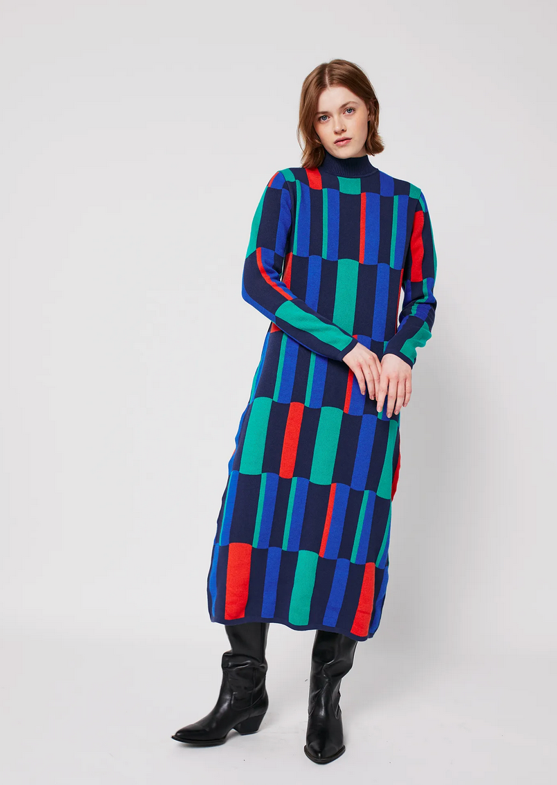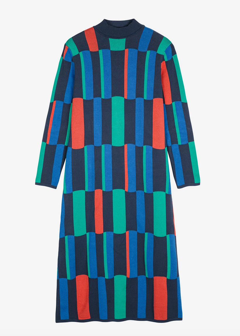 This vibrant and cozy knit dress is a fun must-have for your autumn closet.