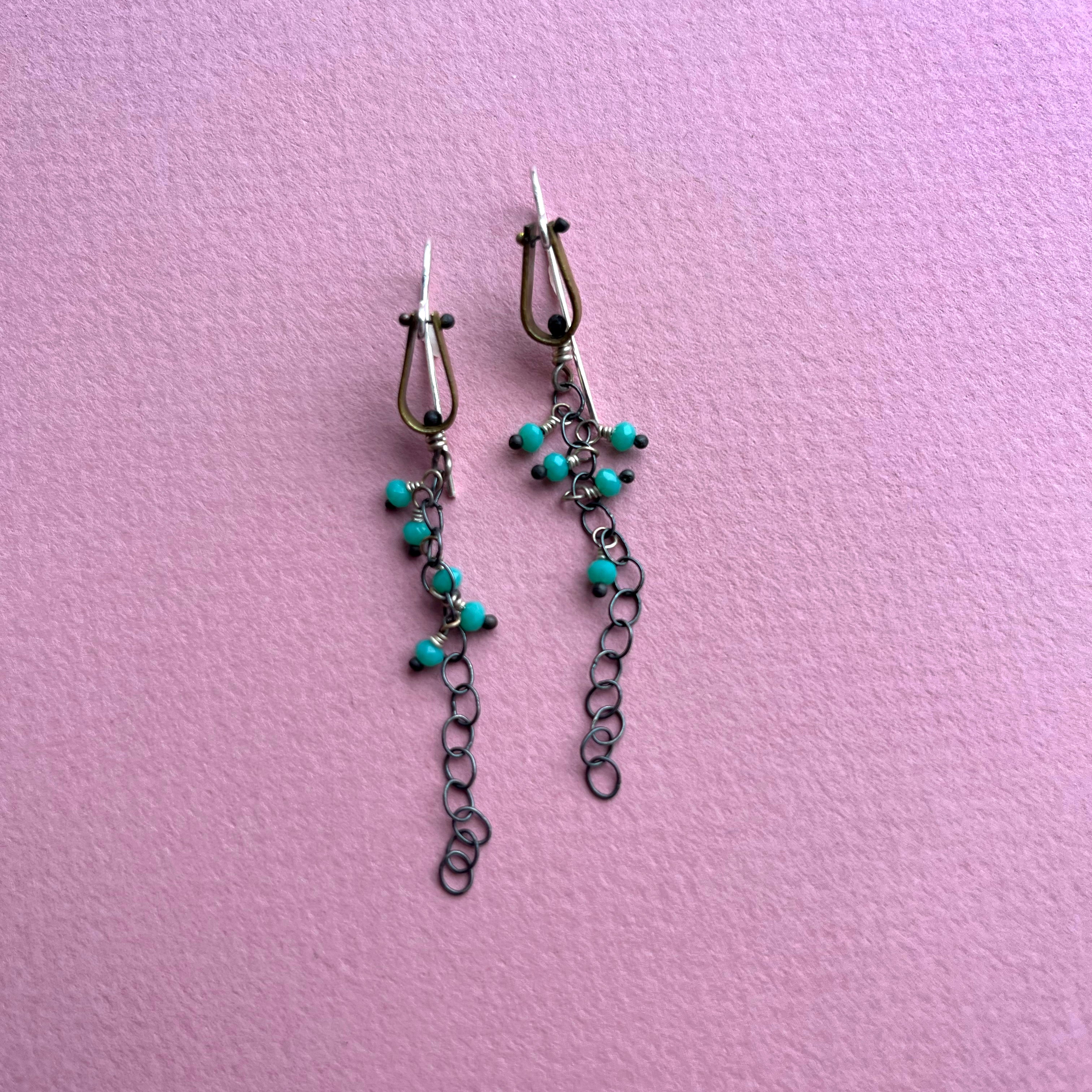 Delicately assembled, these mix metal and stone earrings are a perfect, lightweight wear. Handmade by Eric Silva.