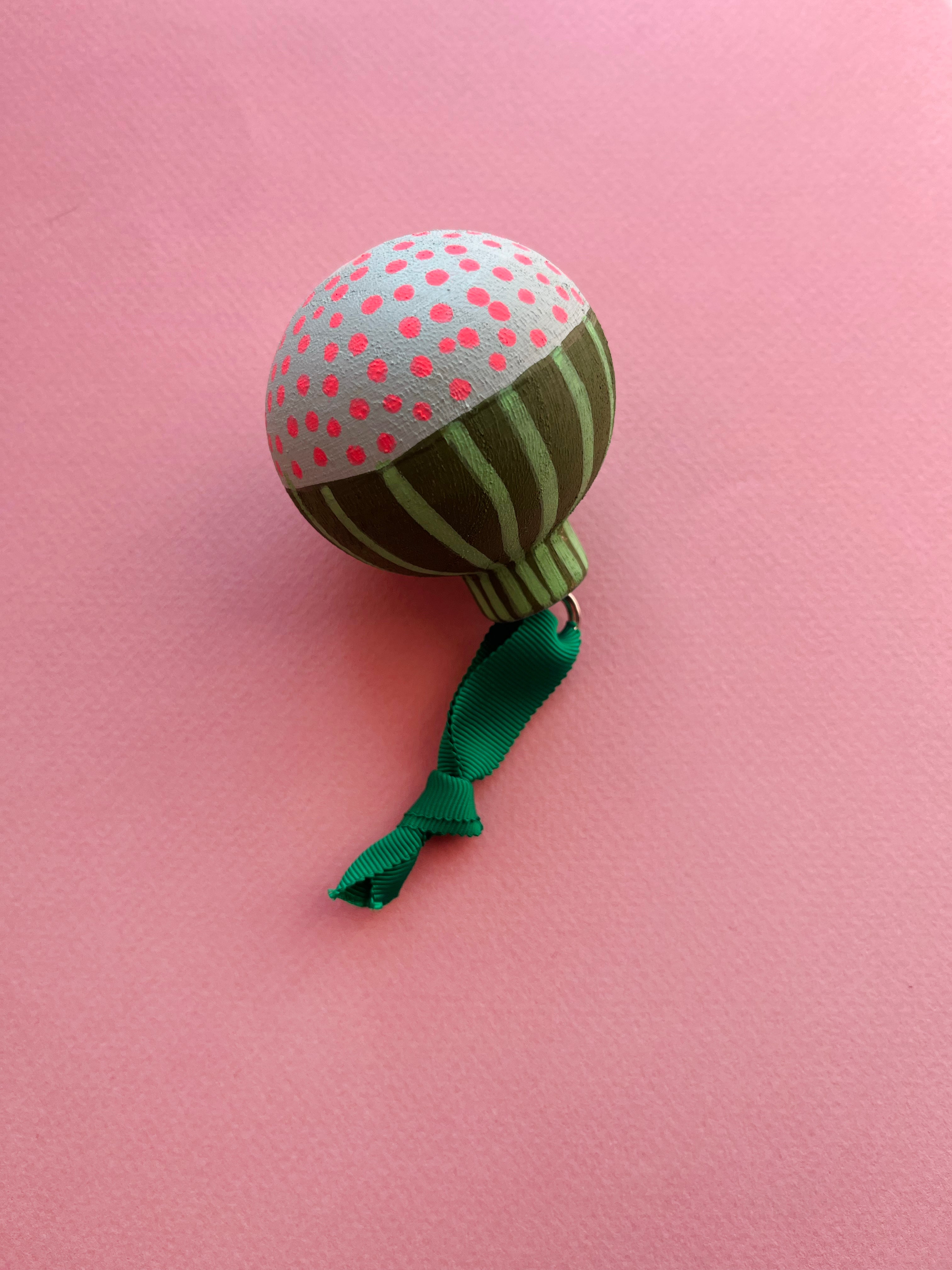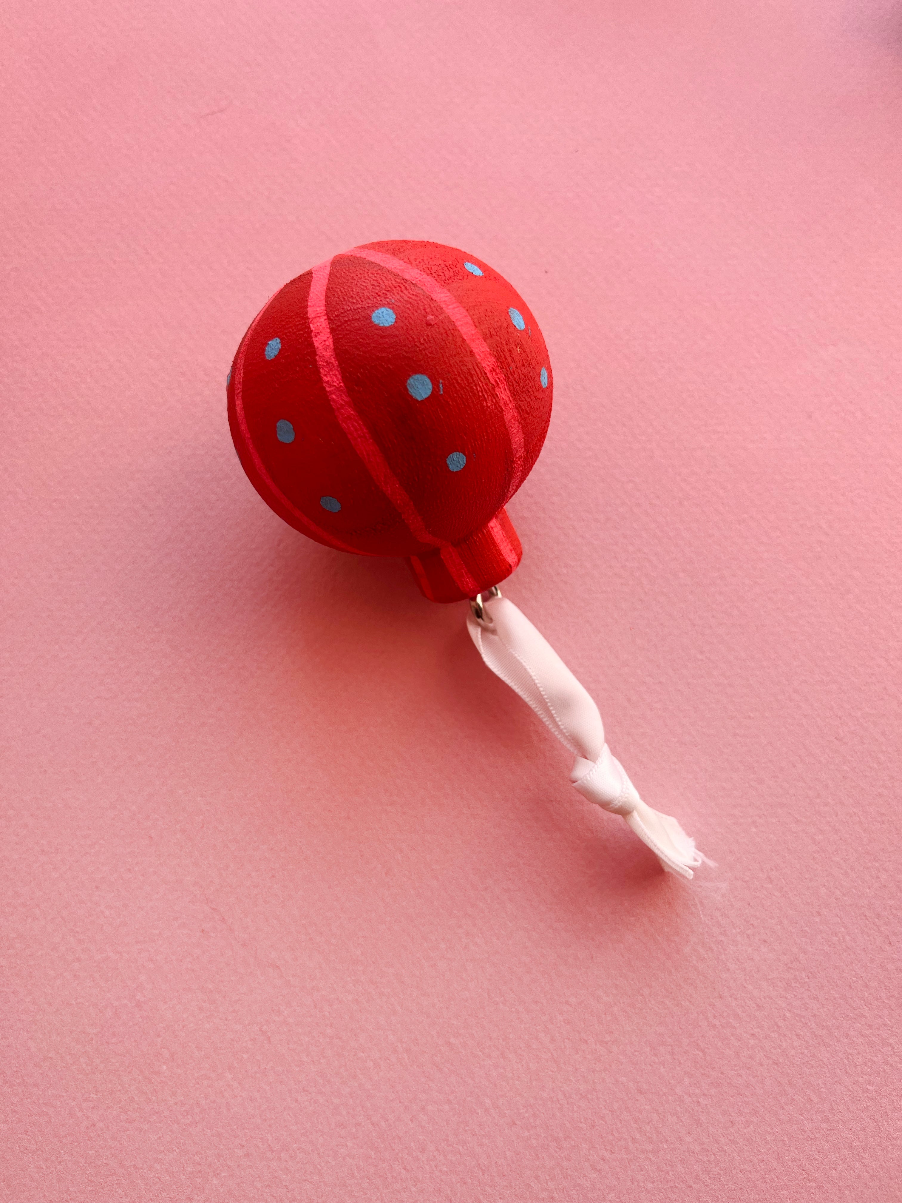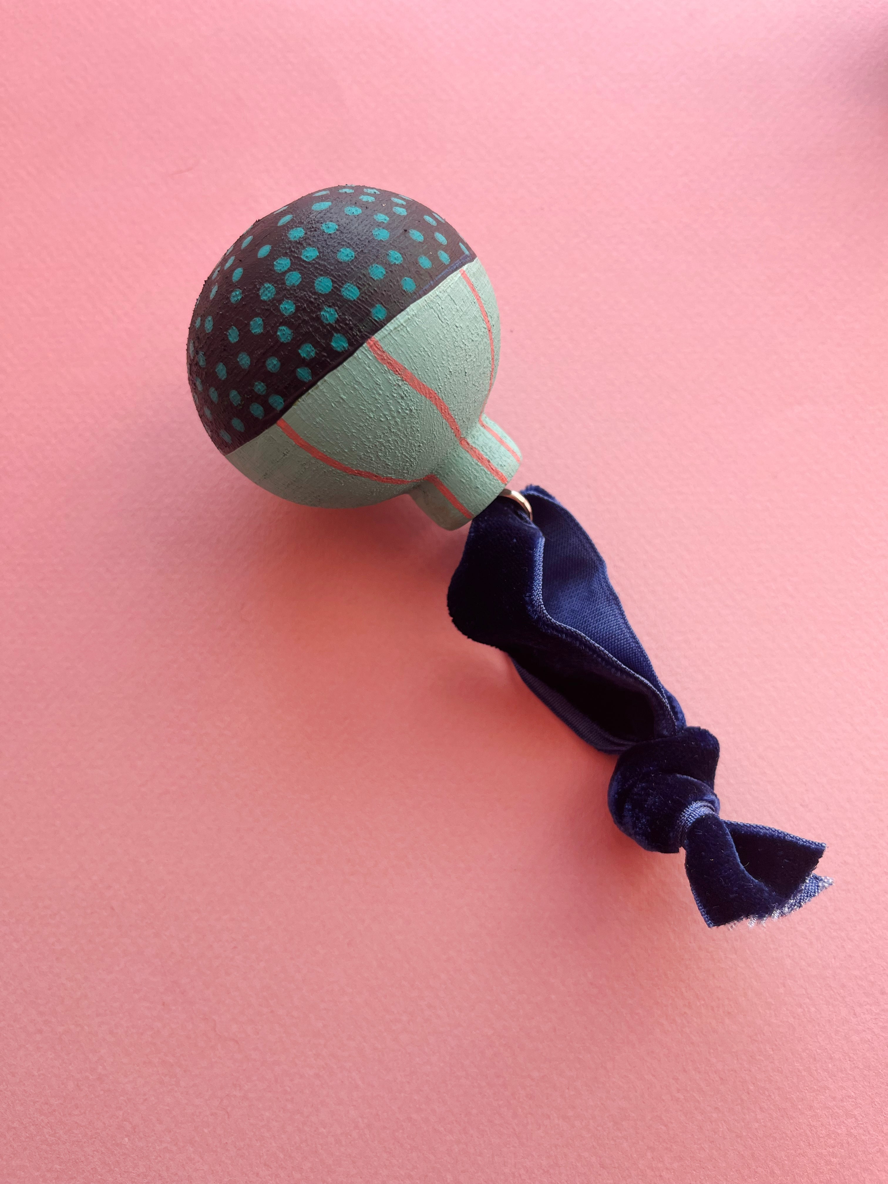 Wood, paint, ribbon
