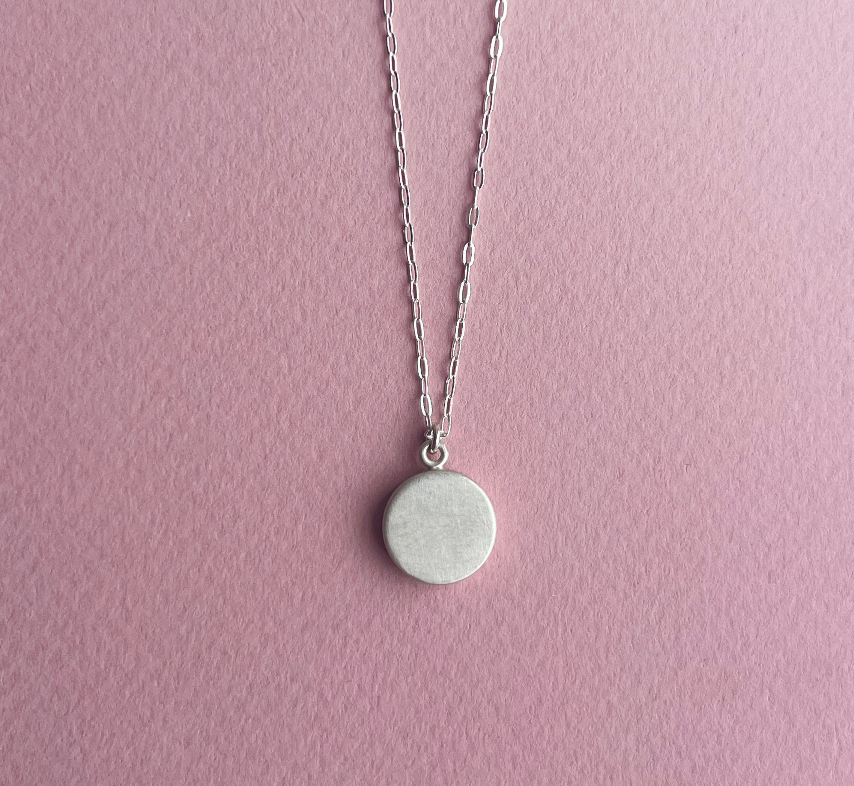 Chain measures 18". Pendant 0,75" L x 0.5" W
