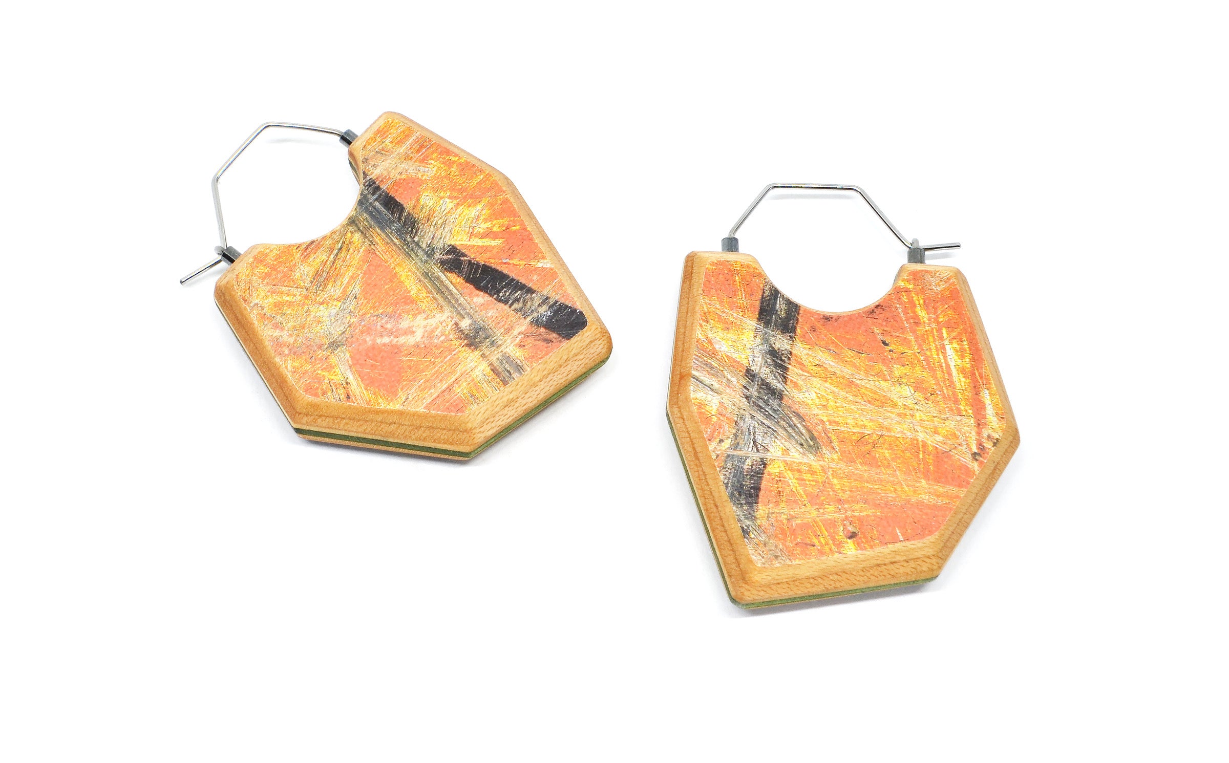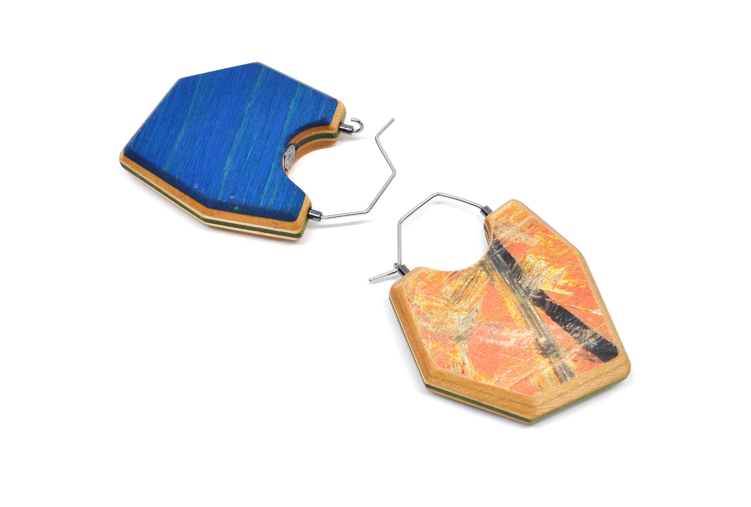 Skateboard decks get a second life as these eye-catching hoops that celebrate individuality. Each pair showcases distinct wood grain character and retro charm, turning recycled materials into statement jewelry. Perfect for those who'd rather stand out than fade into the crowd.