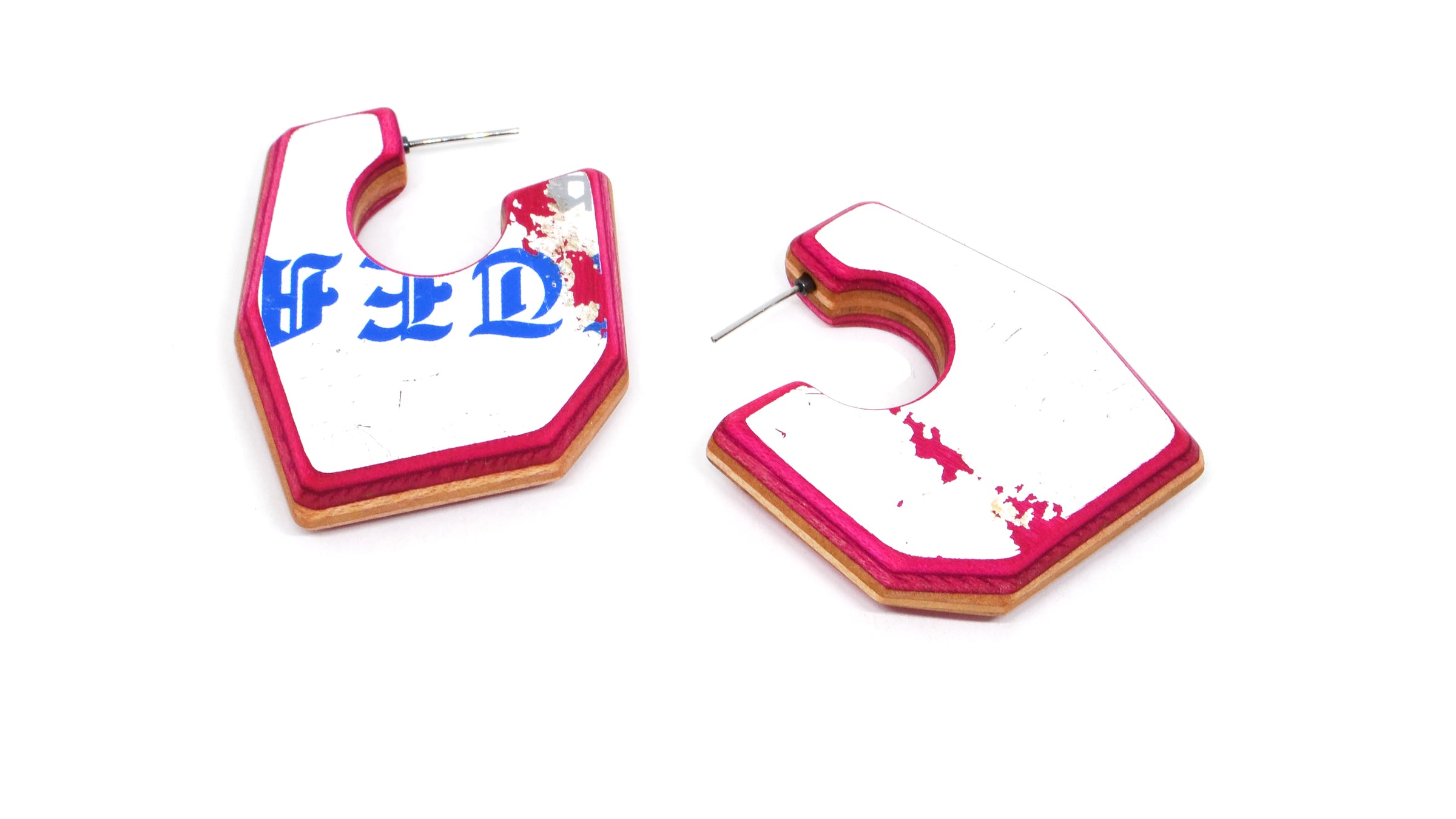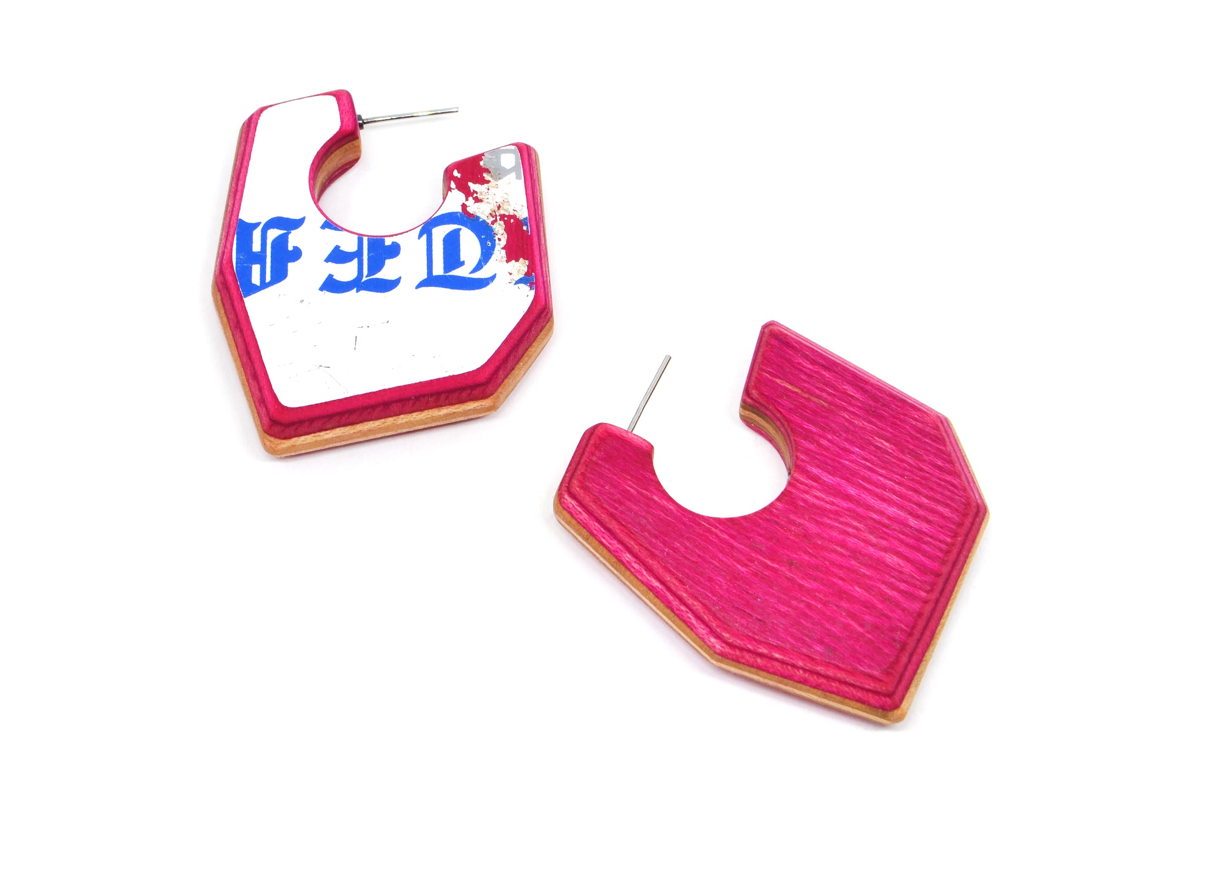 Crafted from reclaimed skateboard decks, each pair brings its own quirky personality to your collection. Made from salvaged skateboard wood, these hoops are one-of-a-kind statement pieces that celebrate individuality.