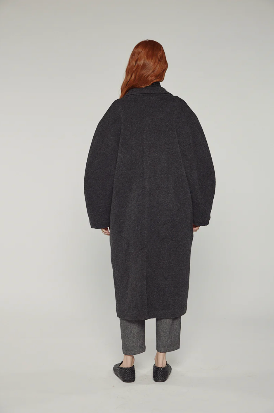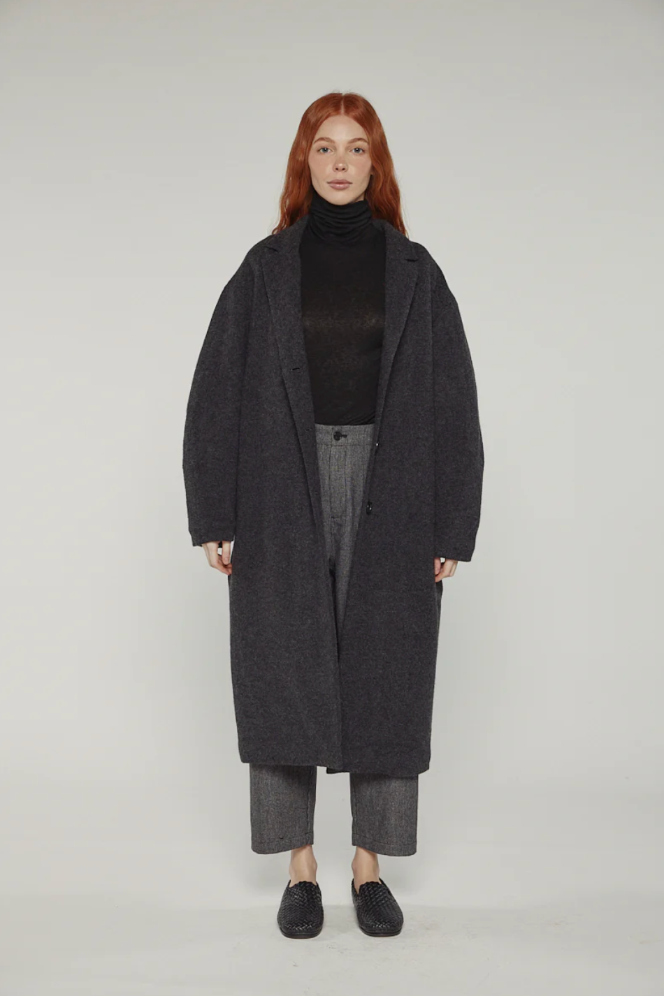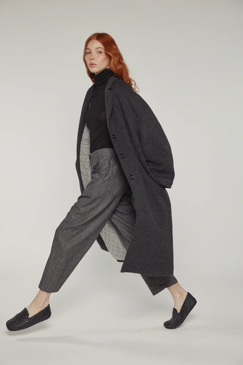 This coat channels classic menswear vibes with a fun twist, featuring bold drop shoulders and a cozy cocoon shape. It’s fully lined with quilted cotton and topped off with sharp blazer-style lapels for a look that's both stylish and comfy.