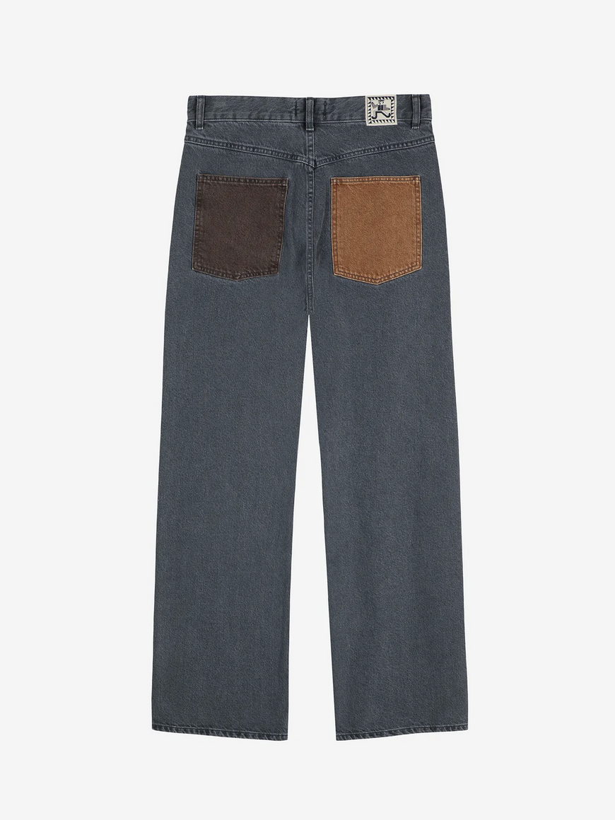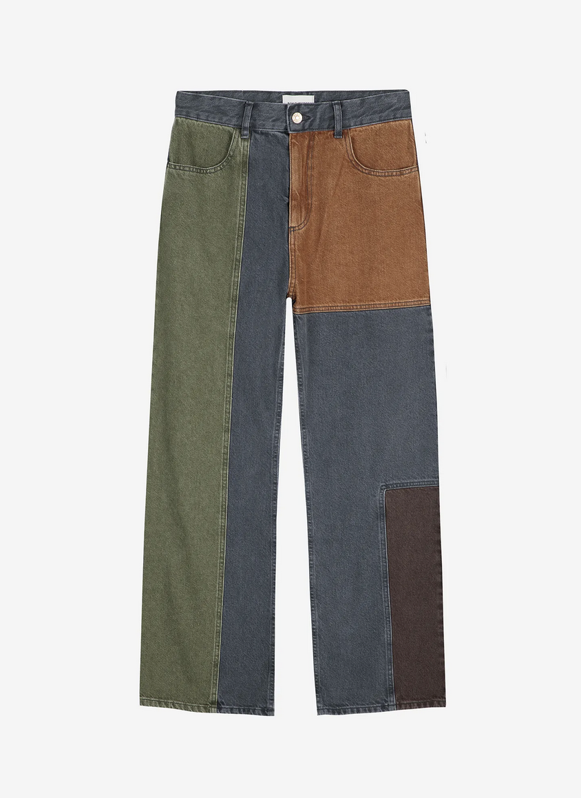 These high-waisted denim jeans with fun color blocks are designed for cozy fall vibes.