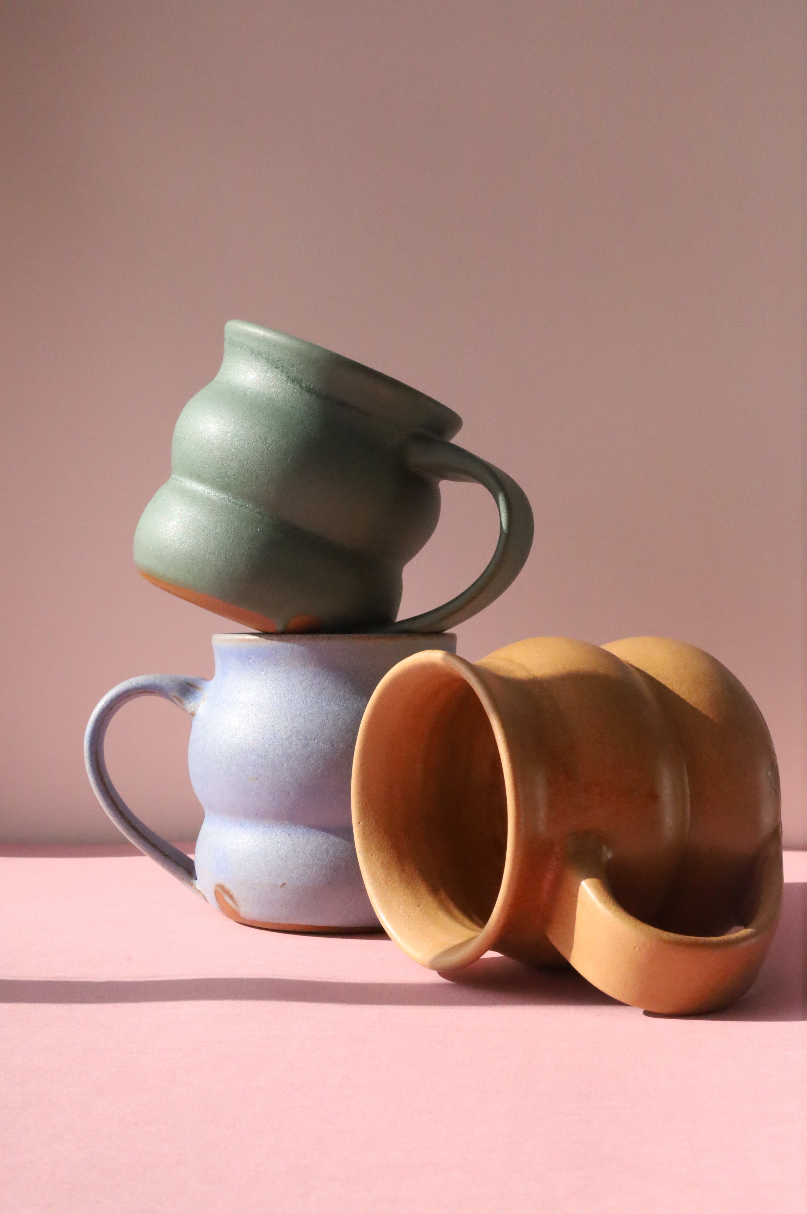 Brighten your daily routine with these charming hand-thrown mugs, featuring a delightful wave design. Ideal for sipping your favorite drink any time of day.